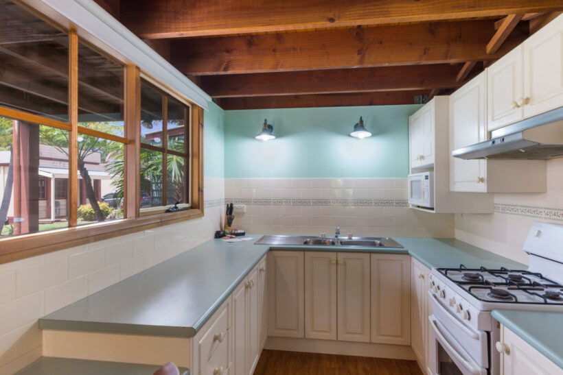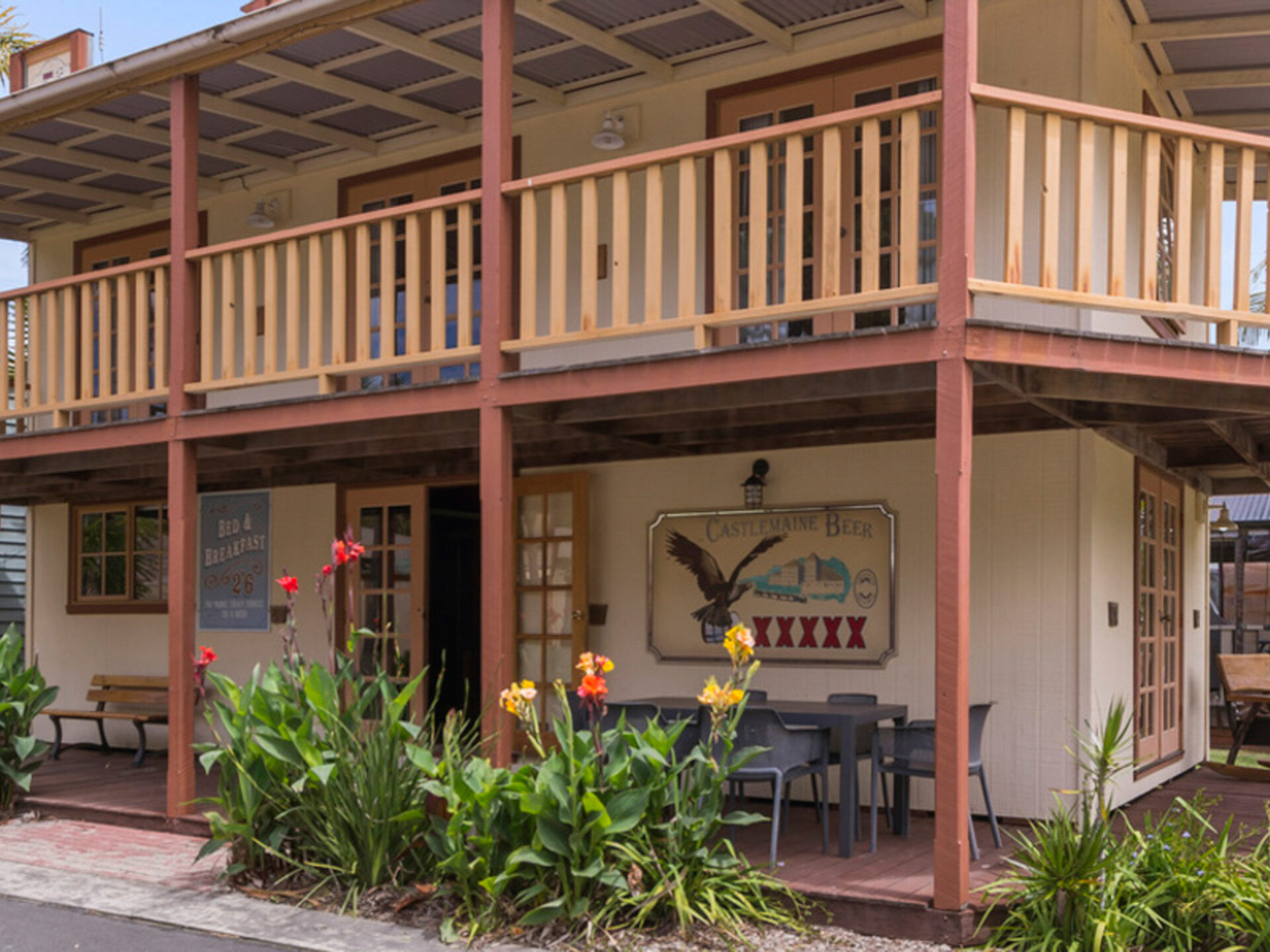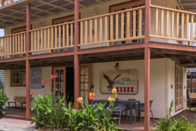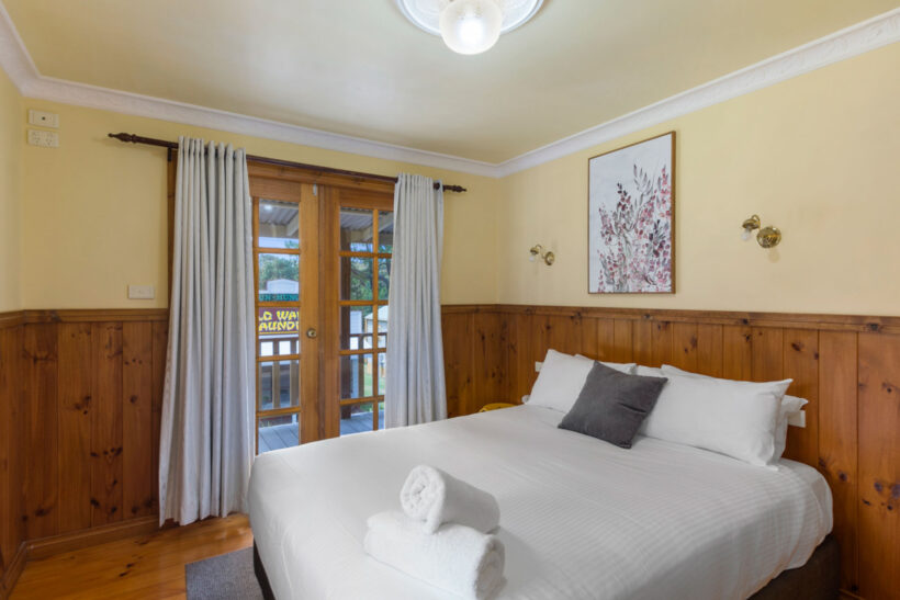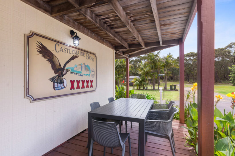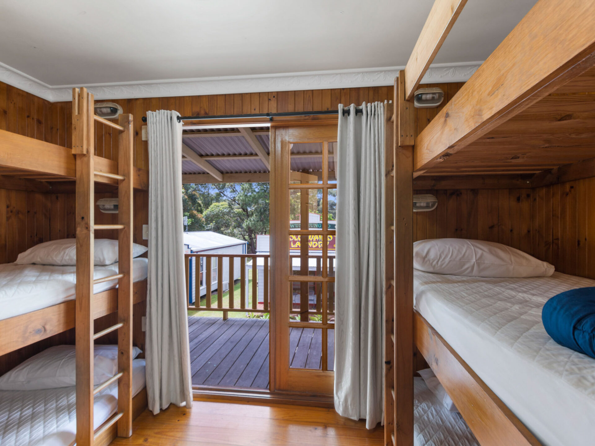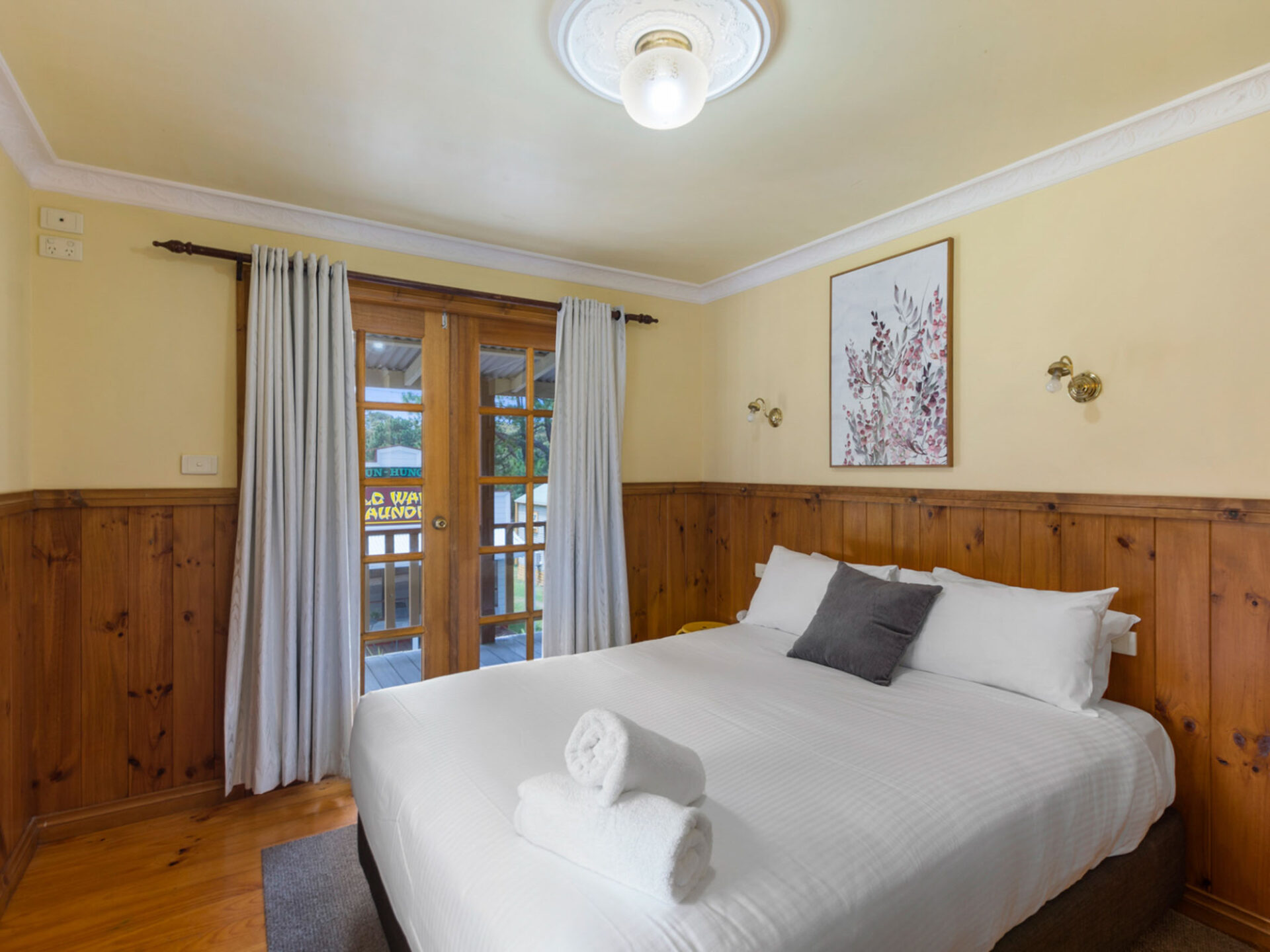 Escape to a one-of-a-kind stay in the Olde Town Pub—an original Wairo Beach icon reimagined for modern comfort. This spacious cabin sleeps up to eight guests across three bedrooms with two queen beds and two bunk beds. Cook up family favorites in the full kitchen, then unwind on the private deck. Air conditioning ensures year-round comfort, all just a short stroll from the beach.